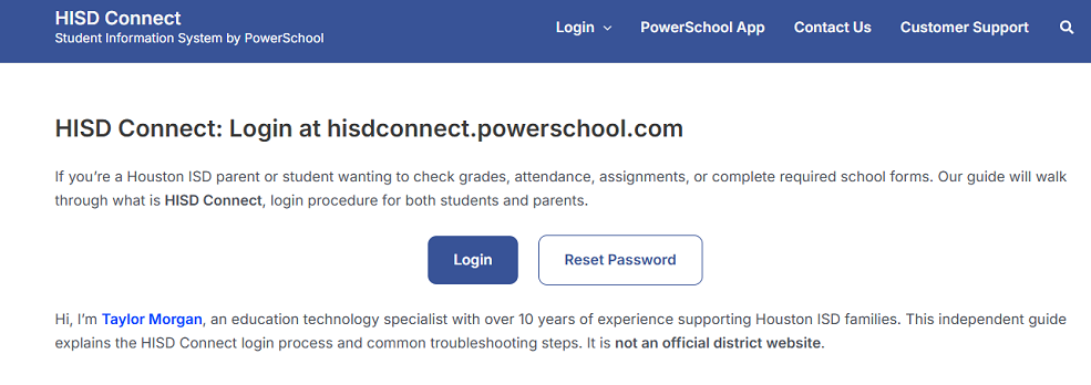 I’m Taylor Morgan, author of HISDConnect.mobi and an Education Technology Specialist with 20+ years of experience supporting K–12 schools in Texas. Holding a Master’s in Educational Leadership from Texas A&M University and certifications such as CETL (ISTE) and PowerSchool SIS Administrator, I create step-by-step guides to help parents and educators confidently manage student records, attendance, grades, and secure portal access.